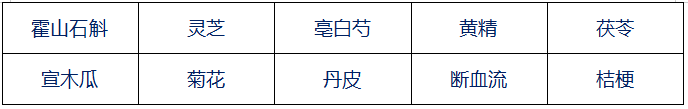 鐵皮石斛、衢枳殼、烏藥、三葉青、覆盆子、前胡、靈芝、西紅花