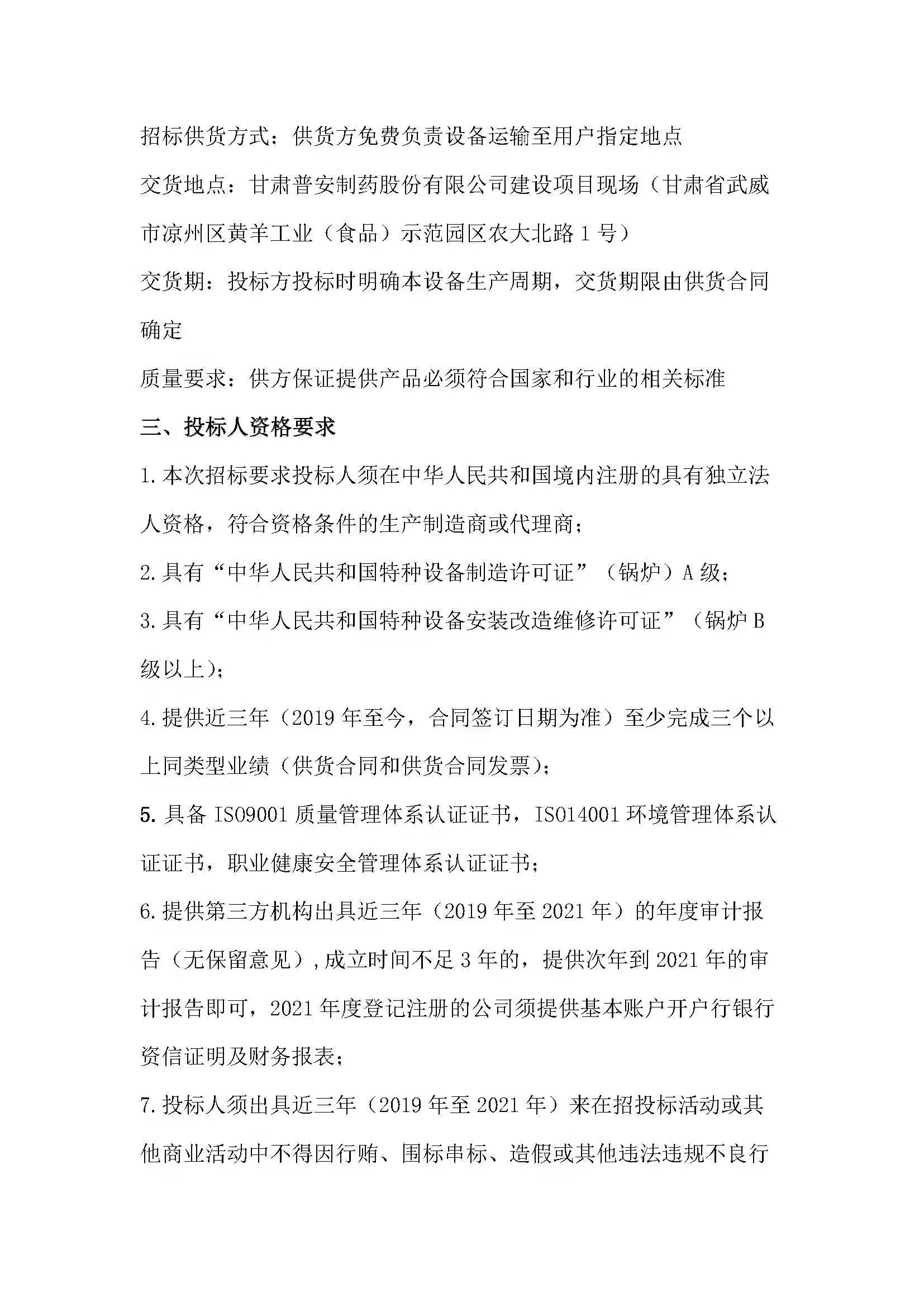 甘肅普安制藥股份有限公司15T/h鍋爐建設(shè)項(xiàng)目鍋爐設(shè)備采購(gòu)招標(biāo)公告