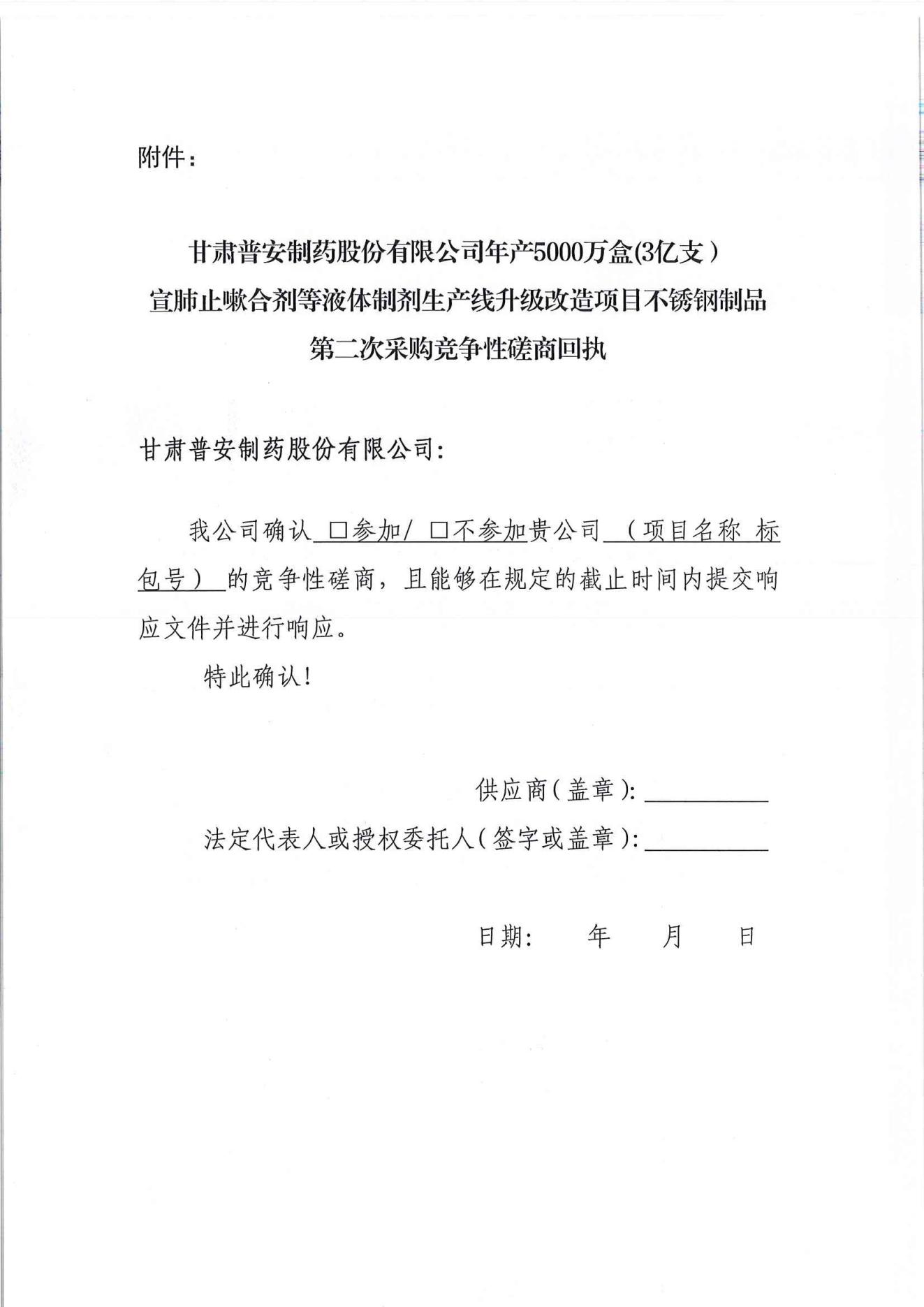 甘肅普安制藥股份有限公司年產5000萬盒(3億支)宣肺止嗽合劑等液體制劑生產線升級改造項目不銹鋼制品第二次采購競爭性磋商公告