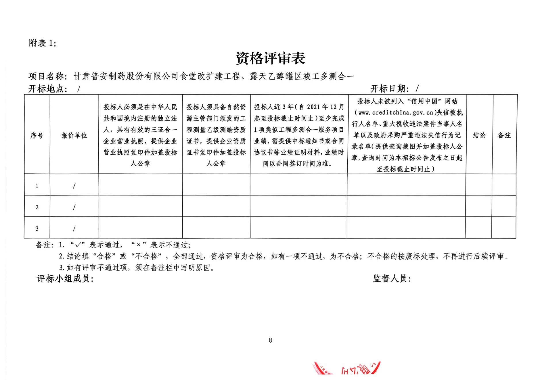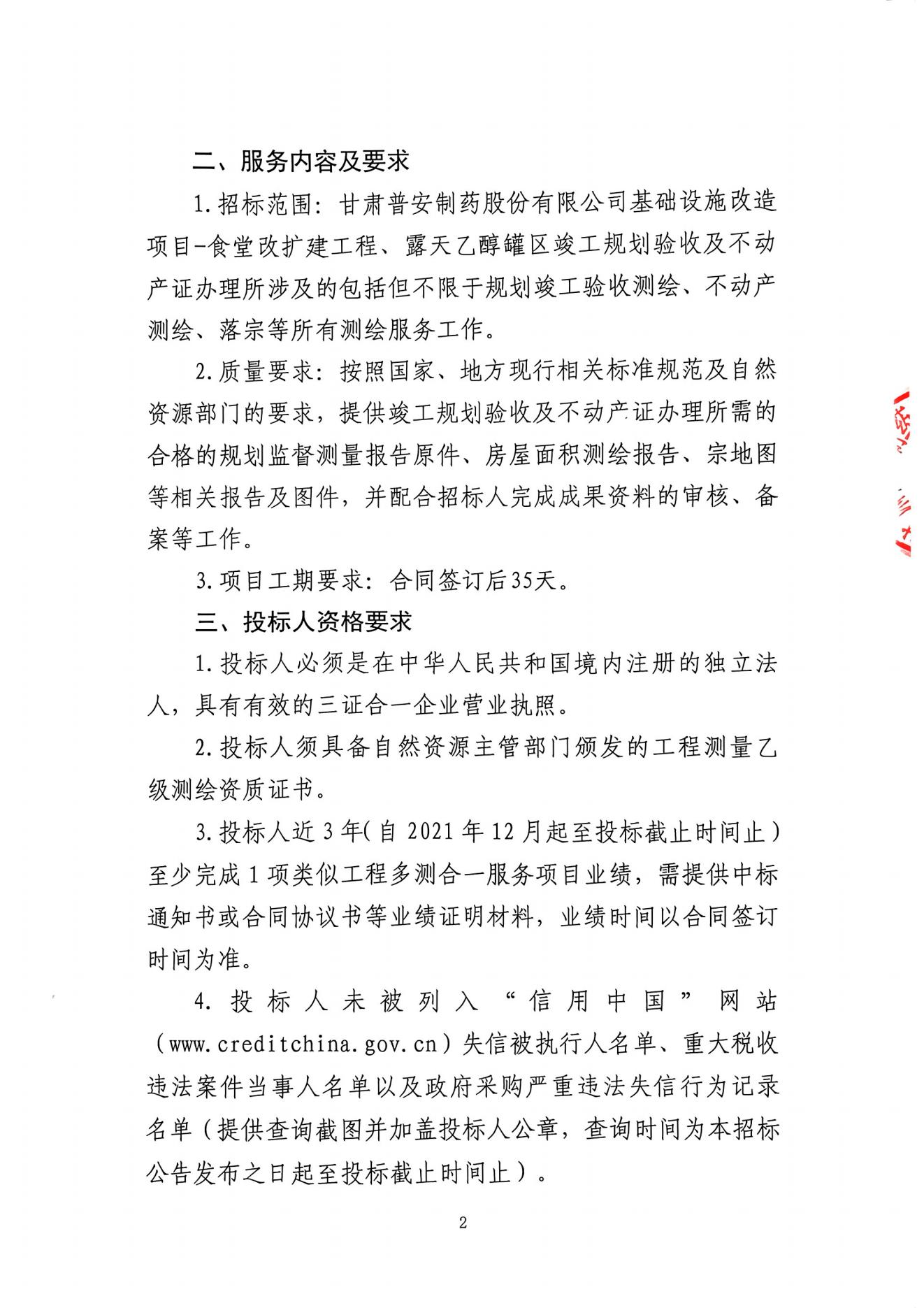 甘肅普安制藥股份有限公司食堂改擴建工程、露天乙醇罐區多測合一服務招標公告