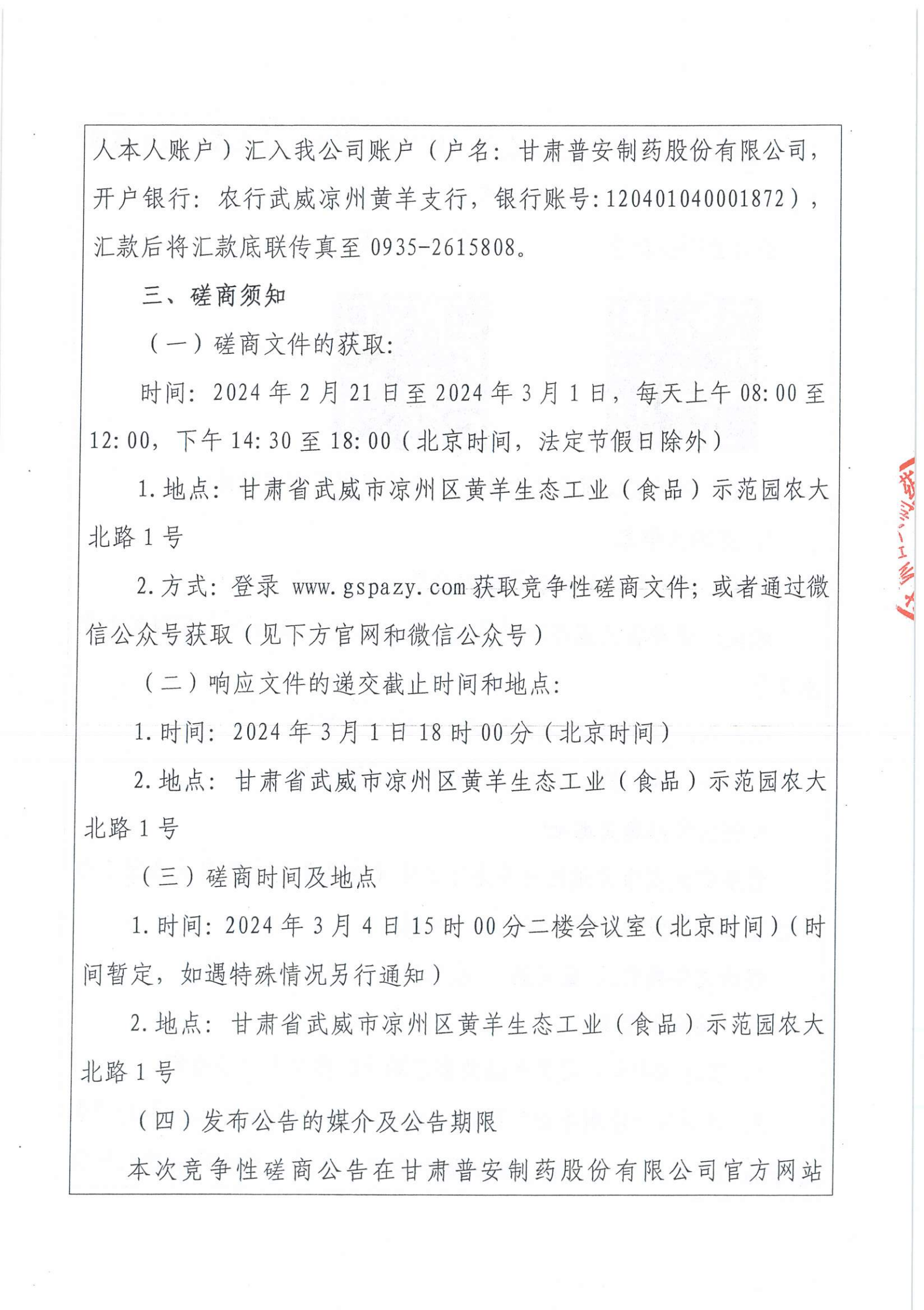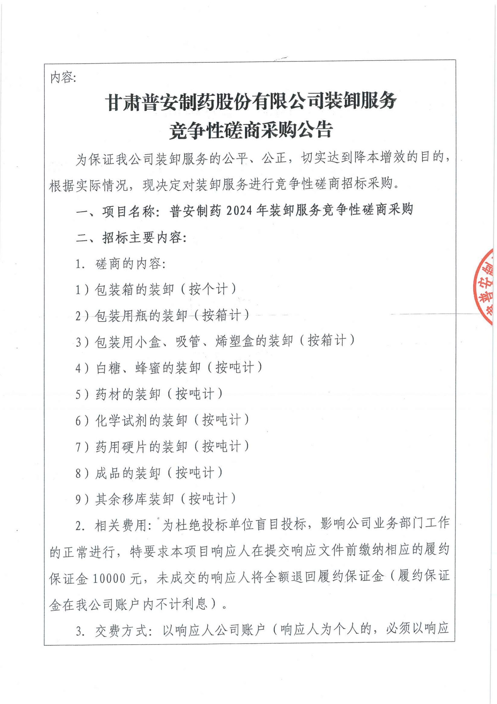 甘肅普安制藥股份有限公司裝卸服務競爭性磋商采購公告