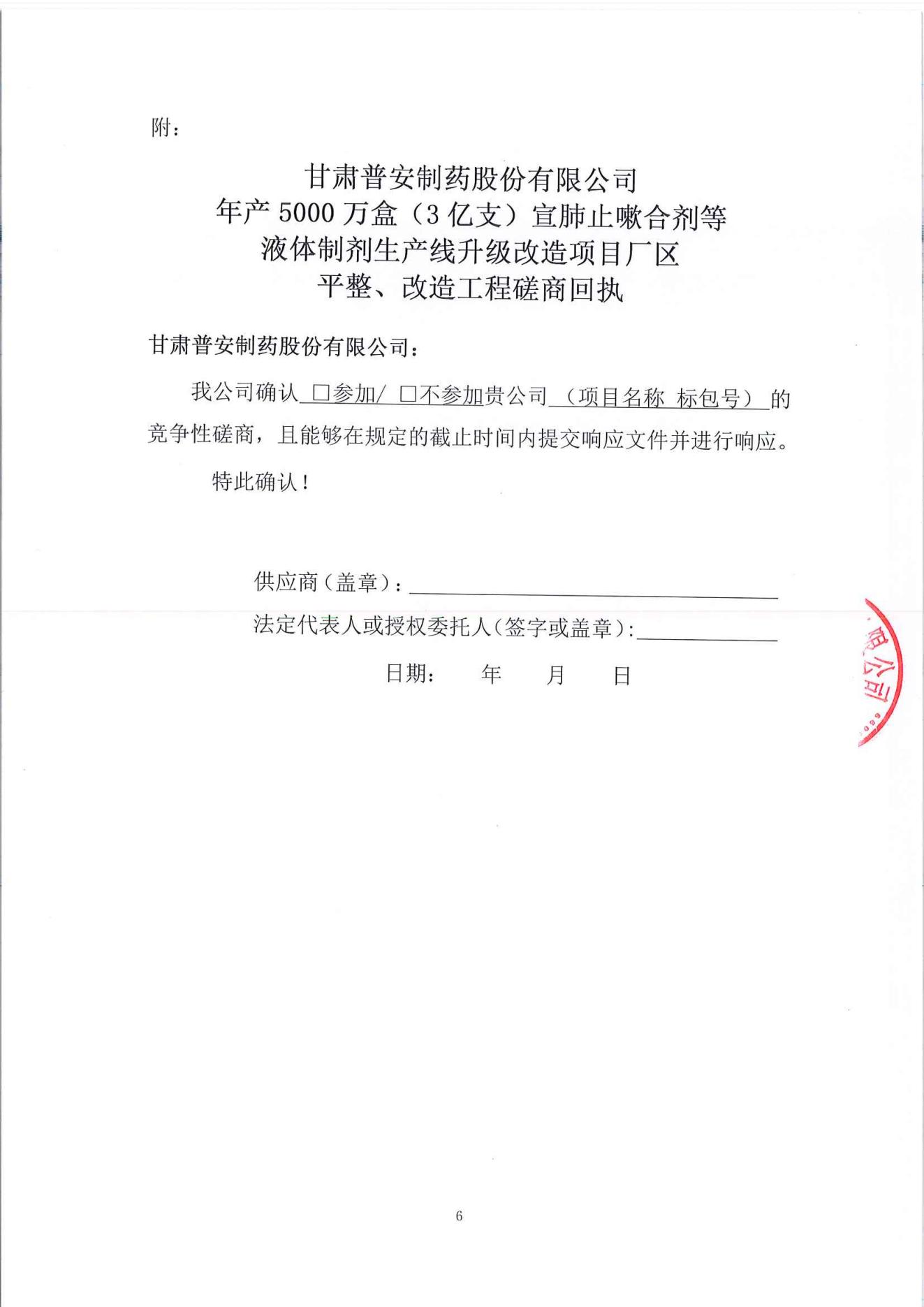 甘肅普安制藥股份有限公司年產(chǎn)5000萬(wàn)盒(3億支)宣肺止嗽合劑等液體制劑生產(chǎn)線升級(jí)改造項(xiàng)目廠區(qū)平整、改造工程競(jìng)爭(zhēng)性磋商公告