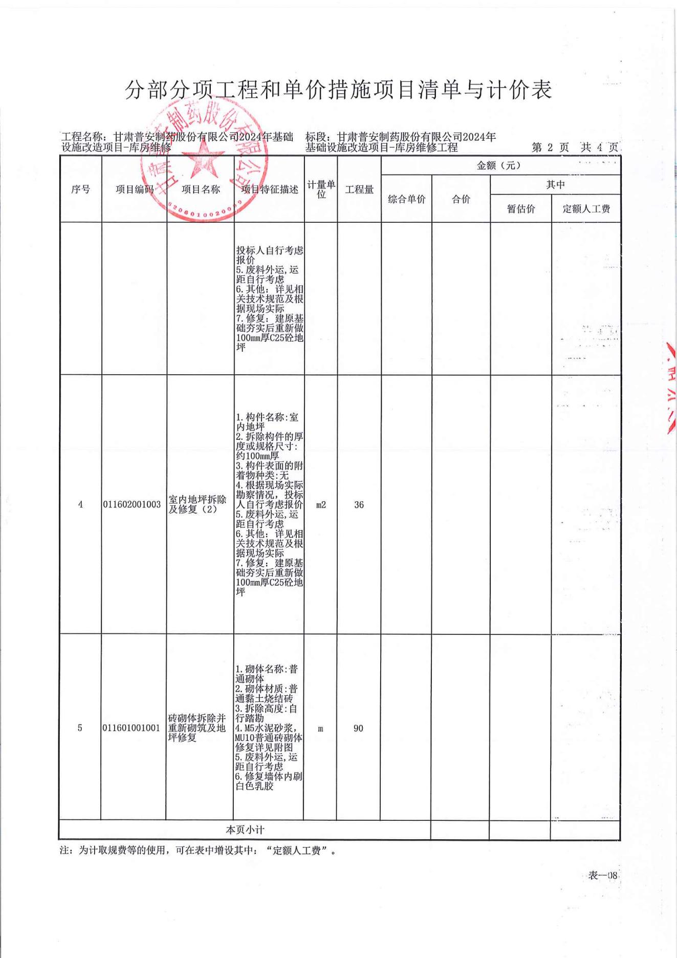 甘肅普安制藥股份有限公司2024年基礎設施改造項目-庫房維修工程施工招標公告