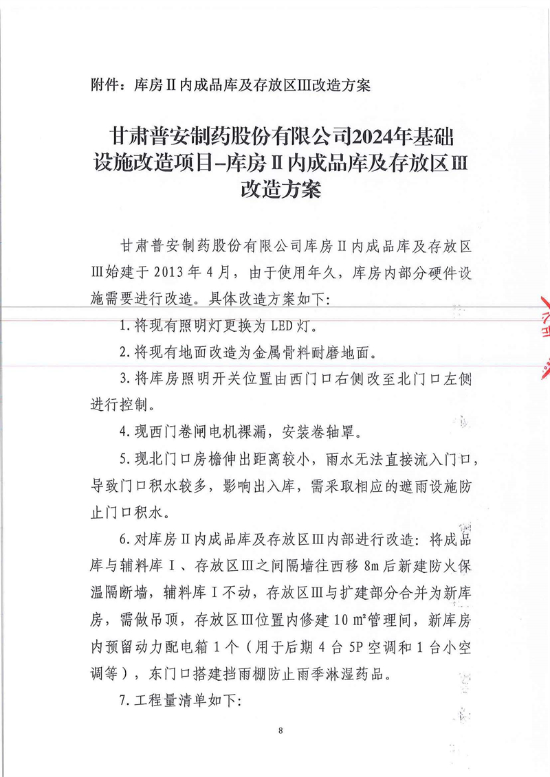 甘肅普安制藥股份有限公司2024年基礎設施改造項目-庫房Ⅱ內成品庫及存放區Ⅲ改造工程施工招標公告