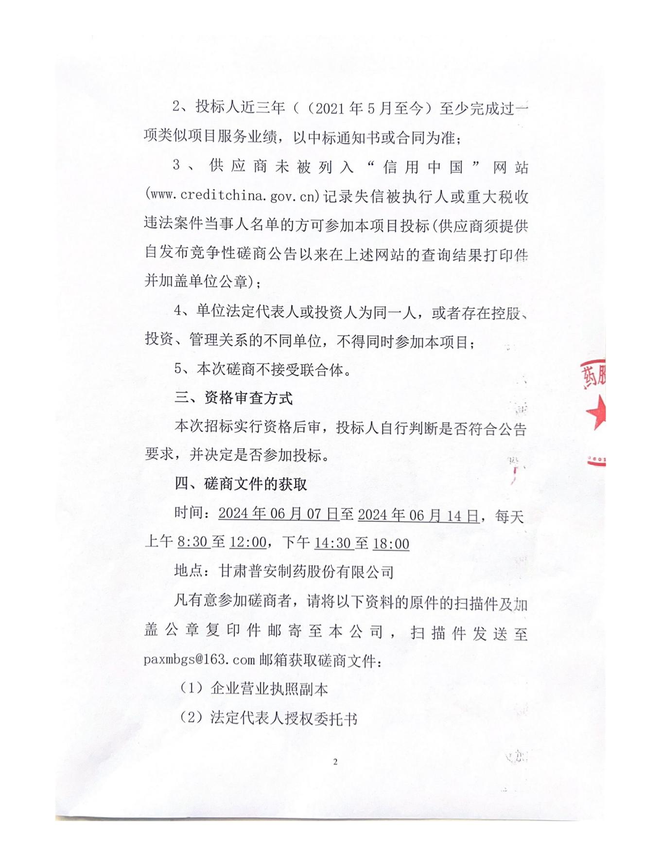 甘肅普安制藥股份有限公司現有15噸燃煤蒸汽鍋爐外包運營服務競爭性磋商公告