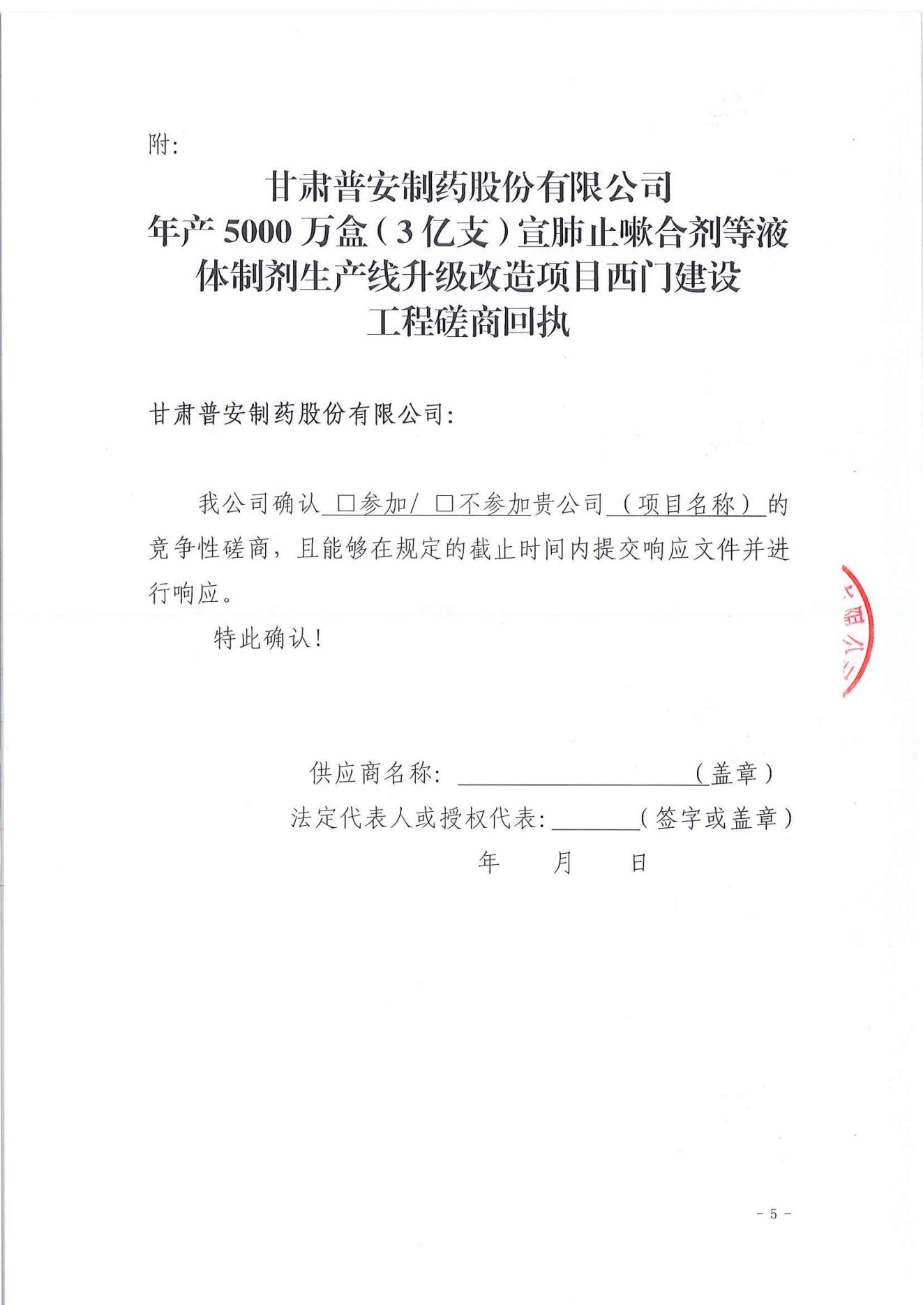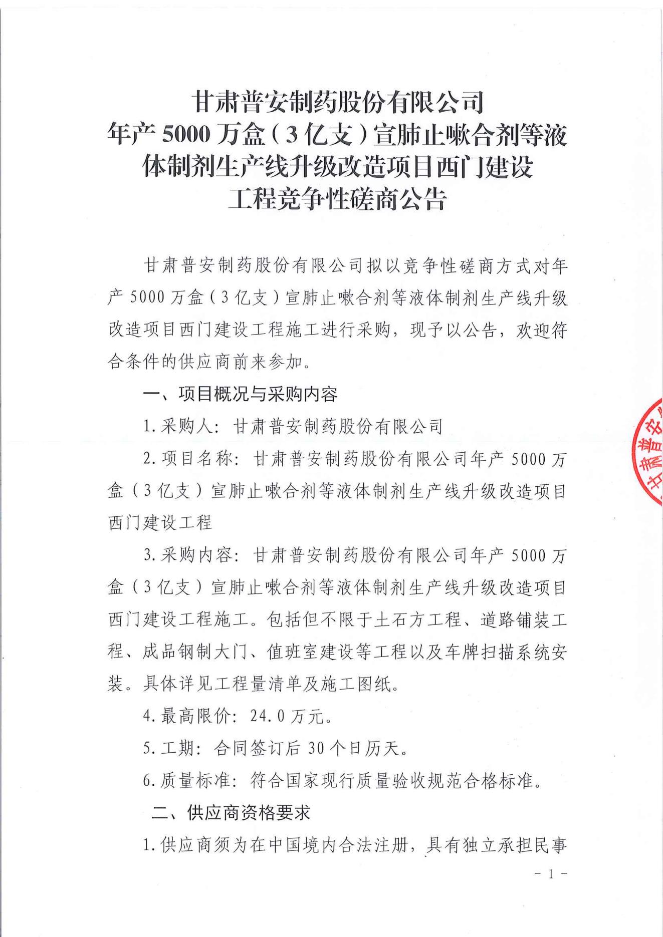 甘肅普安制藥股份有限公司年產(chǎn)5000萬(wàn)盒(3億支)宣肺止嗽合劑等液體制劑生產(chǎn)線升級(jí)改造項(xiàng)目西門(mén)建設(shè)工程競(jìng)爭(zhēng)性磋商公告