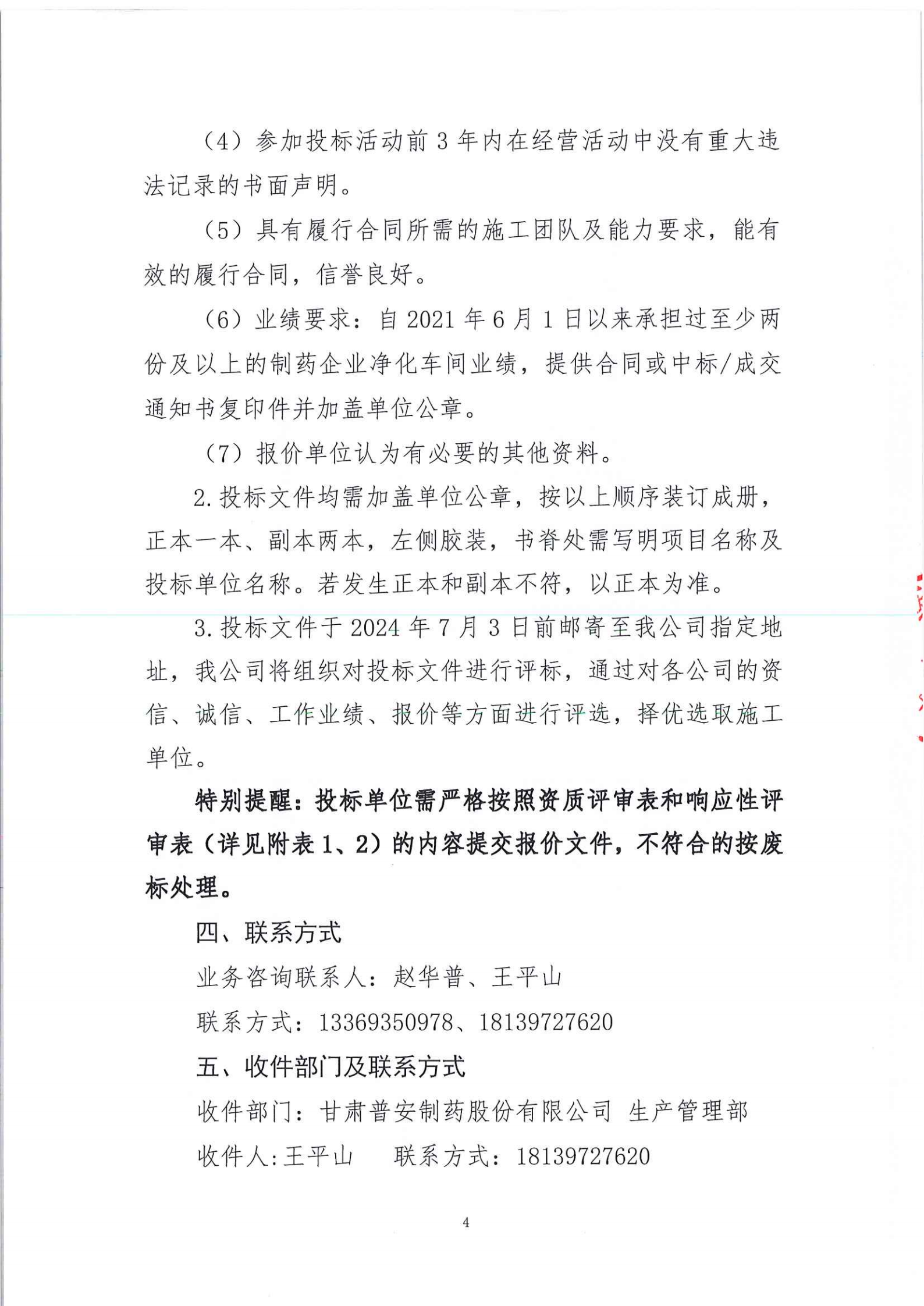 甘肅普安制藥股份有限公司2024年基礎設施改造項目-提取車間部分彩鋼廠房改造施工招標公告