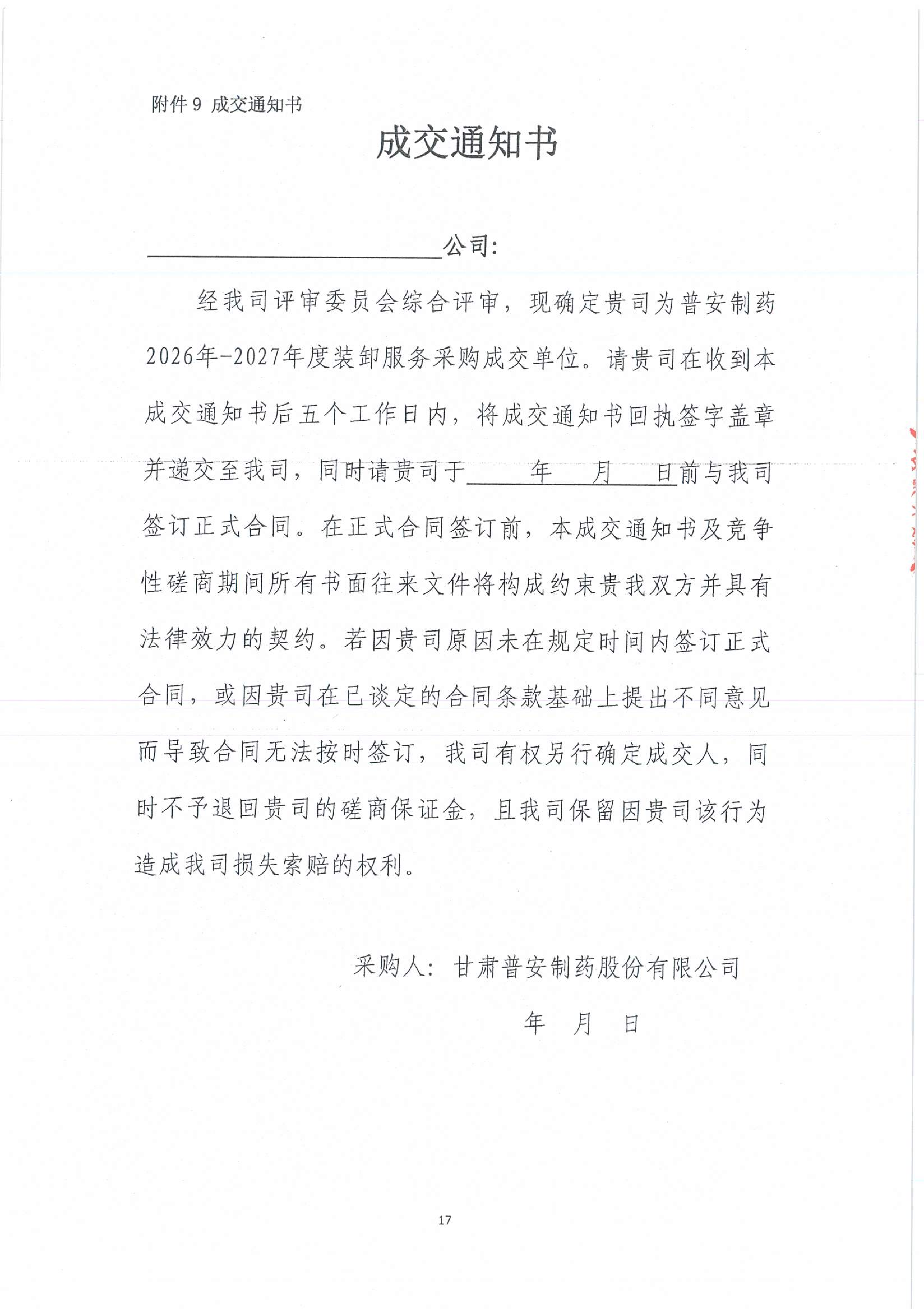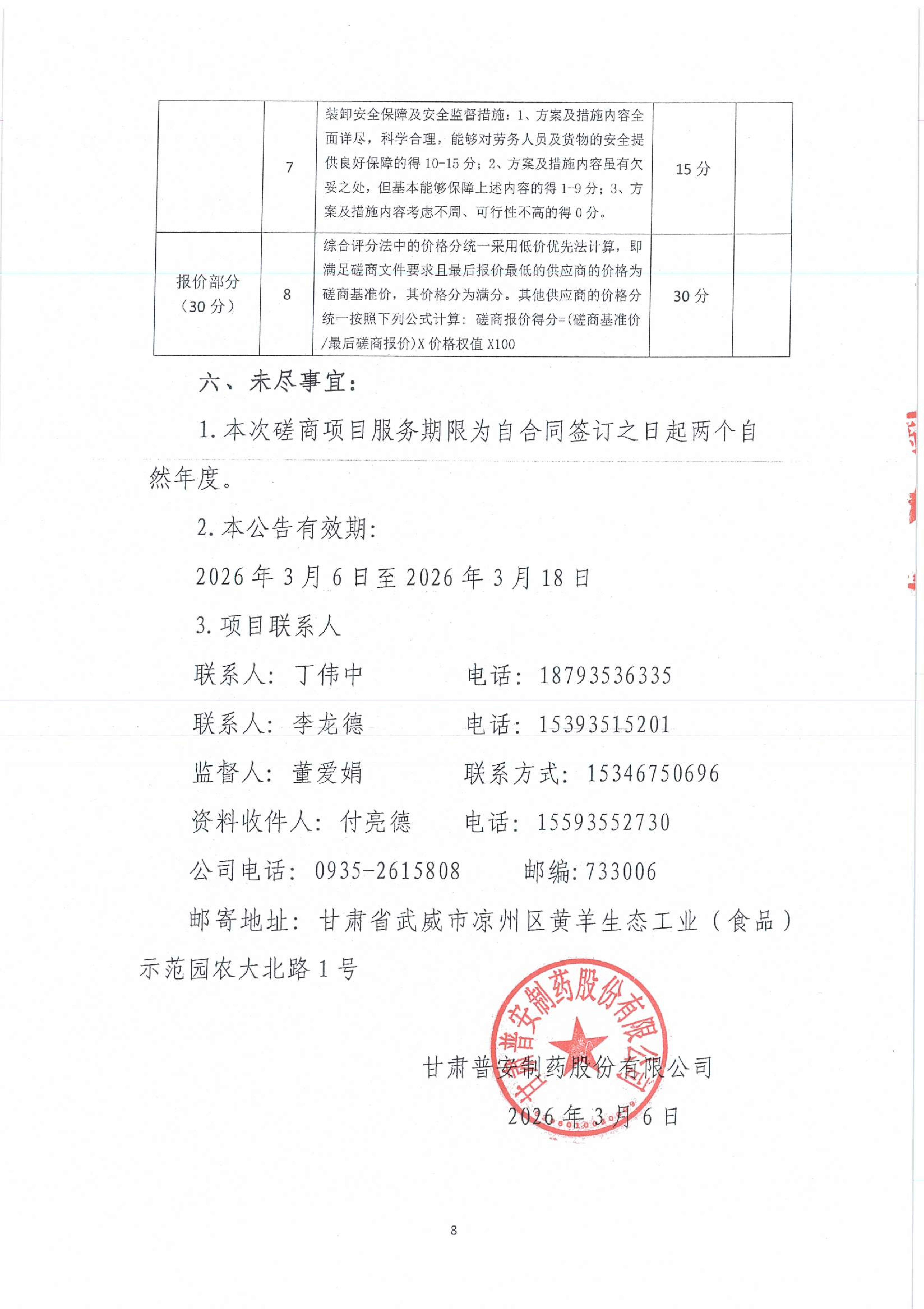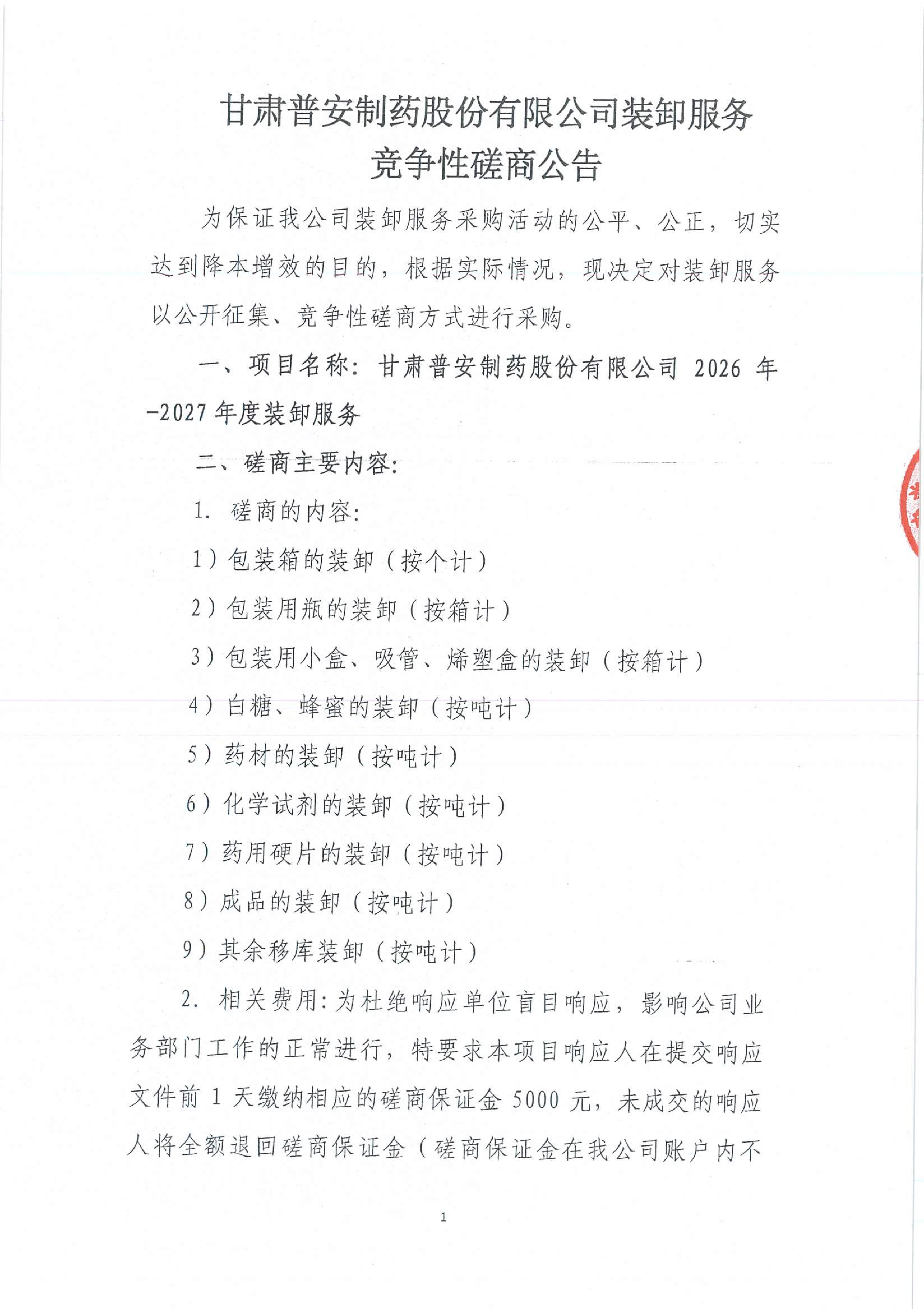 甘肅普安制藥股份有限公司裝卸服務競爭性磋商公告